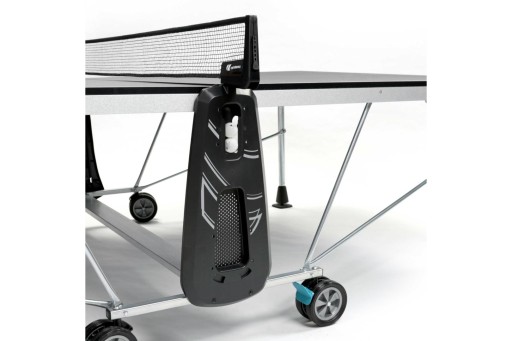 ВЕЛИКІ КОЛЕСА З ГАЛЬМУВАННЯМИ: Столи для пінг-понгу Cornilleau мають великі подвійні колеса. Таке рішення збільшує кочення коліс і стійкість столу. У свою чергу два гальма забезпечують відмінну стабільність і безпеку під час гри. Це також особливо корисно, коли стіл зберігається на трохи нерівній поверхні.