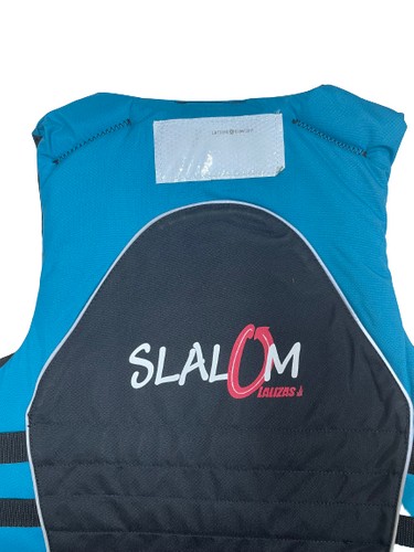 Рятувальний жилет Slalom Buoyancy Aid LIFE VEST має нову вдосконалену конструкцію, яка забезпечує щільнішу та зручнішу посадку для користувача. Компанія пропонує новий рівень комфорту. Чотири пряжки, застібаються на висоті грудей, гарантують, що жилет ідеально прилягає до тіла і не може зісковзнути. Додатково жилет оснащений пластиковим брелоком і світловідбиваючими стрічками SOLAS. Допоміжний засіб плавучості для слалому схвалено відповідно до останніх європейських стандартів 50N, ISO 12402-5. Вся сировина, з якої виготовлений жилет, сертифікована за стандартами ISO 12402-7 та ISO 12402-8, що забезпечує більш високу міцність, якість та довговічність. Поєднання синього і чорного кольорів.