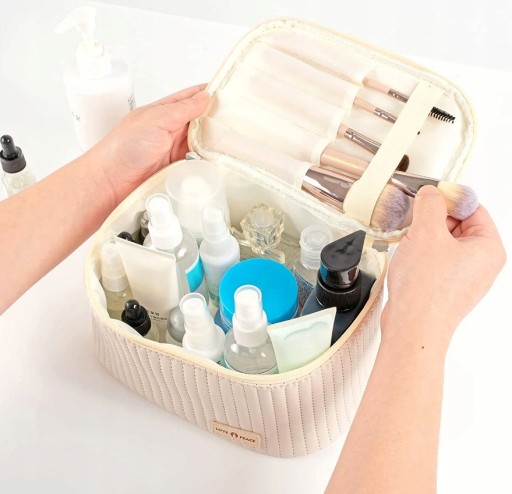 ✅ Ручка вгорі полегшує перенесення косметички та використання під час подорожі