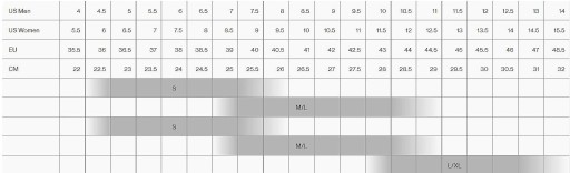 розмір M/L підходить для розміру взуття приблизно 39,5 - 44