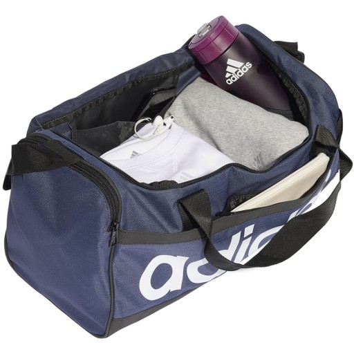 Сумка Adidas Essentials Linear Duffel Small, темно-синьо-біла HR5353
