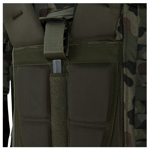 Спереду, з боків і зверху оброблені ременями за стандартом системи MOLLE/PALS, що дозволяє кріпити додаткове обладнання, наприклад, сумки або сумки.