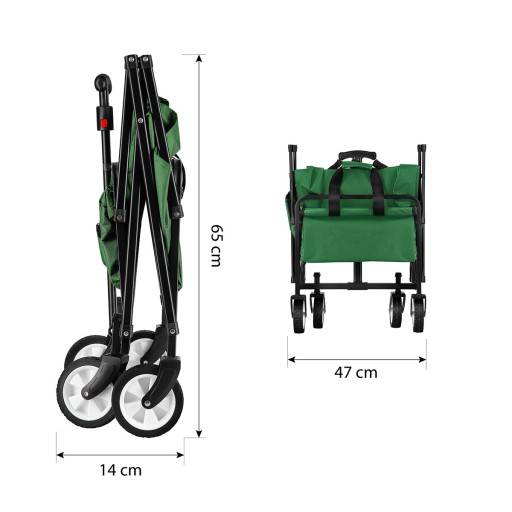 Універсальна коляска ідеально підходить для саду або на відпочинок. Дозволяє перевозити всілякі невеликі вантажі. Найбільшою перевагою є його компактність. Дуже легко складається і розкладається однією рукою. Після складання ви можете легко упакувати його в багажник автомобіля або зберігати в невеликому місці. Крім того, коляска оснащена легкодоступними ручками для перенесення в складеному положенні. Туристична коляска NC1602 від NILS CAMP була розроблена з урахуванням комфорту, практичності та стилю, щоб забезпечити незабутні моменти під час відпочинку в кемпінгу, в горах або на березі моря! Легка в керуванні, складна і, головне, містка коляска вмістить все необхідне для комфортного відпочинку на лоні природи. Тепер все необхідне буквально під рукою!