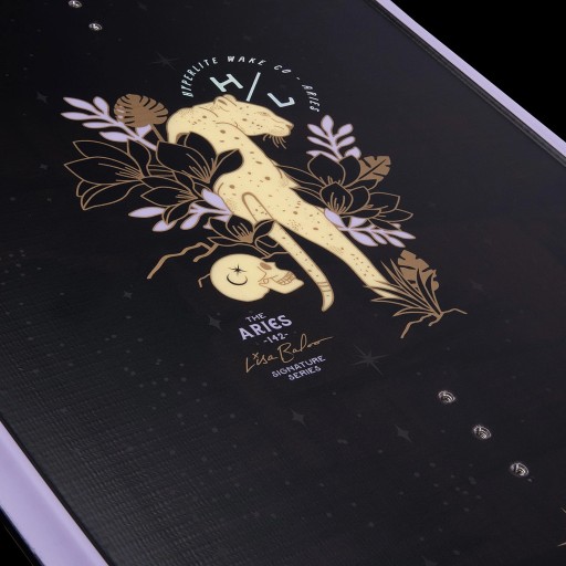 Жіночий вейкборд Hyperlite Aries - у співпраці з Лізою Балу. Цей вейкборд Hyperlite має Flex Factor 5 і використовує технологію Satin Flex. Його вузький профіль покращує керованість краями, а безперервний рокер забезпечує жваву їзду та відчуття швидкості. Завдяки дерев'яній серцевині дошка має постійну гнучкість від кінця до п'яти.