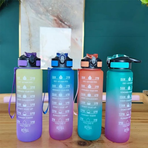 Безпечний матеріал, велика місткість і мотиваційна мірна чашка - безсумнівні переваги цієї модної пляшки. Завдяки прикріпленому шнурку його легко носити, а стаціонарно встановлена соломинка дозволяє швидко і легко пити в будь-яких умовах.