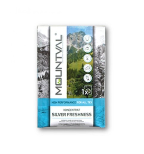 Mountval Silver Freshness містить частинки наносрібла, які пригнічують ріст бактерій і водночас запобігають утворенню неприємного запаху. Засіб зупиняє розмноження бактерій всередині тканини і забезпечує тривале відчуття свіжості та гігієни.