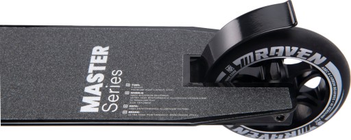 Скутер RAVEN Master Black 110 мм характеризується анодованими елементами, такими як гальмо. кільце вилки та керма. Максимально допустима вага користувача 100 кг. а сам скутер важить всього 3,58 кг. Це продукт, створений для змагань на самокатах.