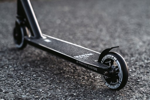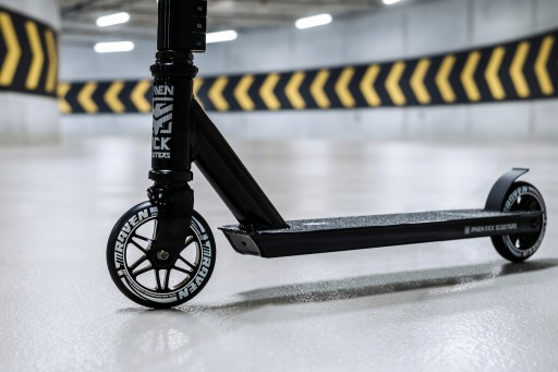 Master Black 110mm - це трюковий самокат виняткової міцності та стабільності. Використання преміальної високовуглецевої сталі та алюмінію HS7000 забезпечує його легкість і довговічність. Ручки найвищої серії Ultra Grip і неслизька підкладка платформи гарантують безпечну та плавну їзду.