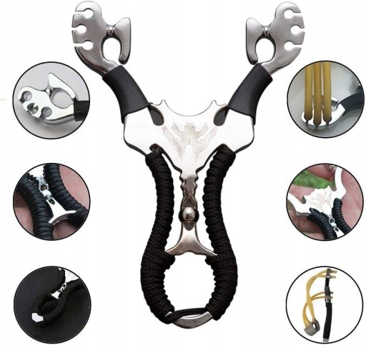 - Ця катапульта для рогатки, виготовлена з 3 гумових стрічок, потужніша, відстань стрільби довша, точніша та швидша, найкраща рогатка для полювання. Ідеально підходить для тренування очей та уваги, розваг, змагань та полювання.