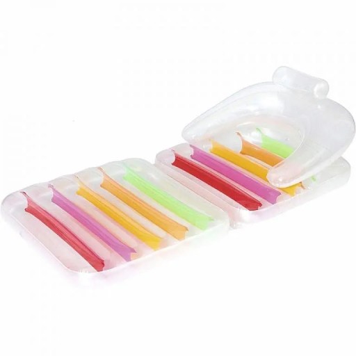 Дуже зручний і практичний матрац стане в нагоді всім любителям як води, так і проведення часу на пляжі. Матрац можна використовувати як класичний матрац для купання, прийняття сонячних ванн, так і як крісло для сидіння. Додатковою перевагою, яка забезпечить вам комфорт і відпочинок, є підлокітники і надувна спинка. Класичні білі елементи в поєднанні з райдужними елементами неодмінно вам сподобаються.