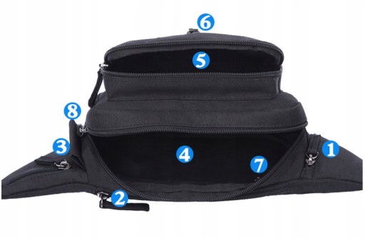 Сумка має 3 відділення, що застібаються на блискавку.