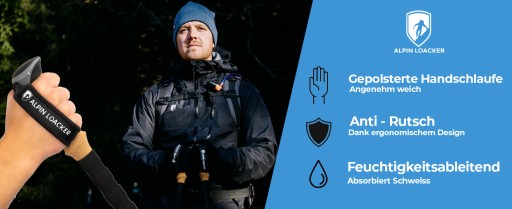 - ? Маленькі – телескопічні трекінгові палиці Alpin Loacker досягають лише 65 см, коли їх зіштовхнути разом. Трекінгові палиці також індивідуально регулюються від 105 до 135 см!