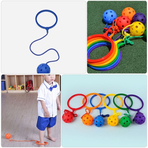 Характеристики Колір: червоний, жовтий, синій, зелений, фіолетовий, помаранчевий. Матеріал: пластик. Розмір: приблизно 72,00X7,00X7,00 см/28,30X2,75X2,75 дюймів. Довжина еластичного м'яча: 7 см / 2,76 дюйма; Довжина мотузки: 50 см/19,69 дюйма; Довжина пластикового кільця: 15 см/5,91 дюйма. М'яч для стрибків виготовлено з хороших матеріалів, що може дати вам більш комфортний досвід. Наші іграшки покращують координацію та моторику дітей і допомагають їм рости щасливо. Чудова іграшка для заохочення дітей до вправ і хороший спосіб розвитку координації та рівноваги дітей. Кубики для стрибків легко пробудять у дітей інтерес до спорту та дозволять їм вести здоровий спосіб життя. Легкий і портативний, його легко носити з собою. Ви можете взяти його на тренування.