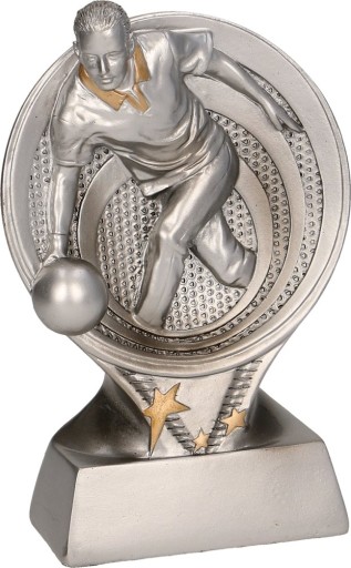 Срібна статуетка з золотими елементами зображує гравця, який виконує кидок у класичному стилі, тобто замахом і рухом руки відпускає м’яч до кеглів. Боулінг-трофей часто вручають під час церемоній нагородження в боулінг-турнірах або спортивних лігах.