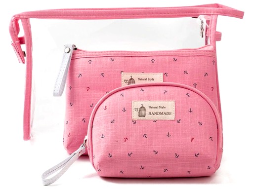 - Набір складається з трьох косметичок - одна прозора, дві тканинні