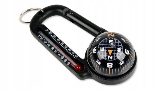 Карабін від Fosco з компасом і термометром. Чорний карабін виготовлений з міцного, але легкого алюмінію.