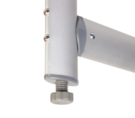 Виготовлений з легкого алюмінію. Ніжки регулюються на 3 рівнях (55/65/70 см), оснащені ніжками/гвинтами для більш точного регулювання. Під стільницею є сітка, яка служить додатковою полицею.