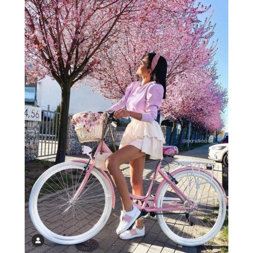Поруч зірка Instagram Jaanetkaa на нашому велосипеді Lavida Pastel Pink.