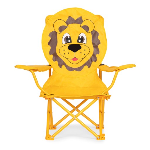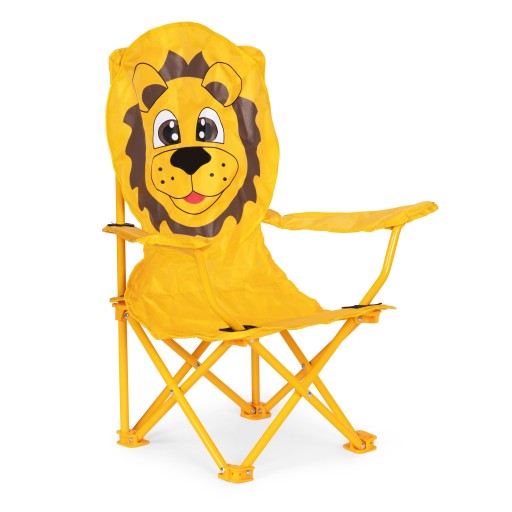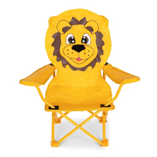 Крісло було виготовлено з урахуванням міцності та безпеки дітей. Його каркас виготовлений з міцних сталевих труб, що забезпечує належну стійкість і довговічність.Помаранчева обкладинка з малюнком лева приверне увагу і привабить кожну дитину. Покриття виготовлено з поліестеру (600D) з додатковим покриттям поліуретаном, стійким до дощу та сонця. Завдяки цьому крісло прослужить багато сезонів і швидко стане вашим улюбленим місцем для сидіння.