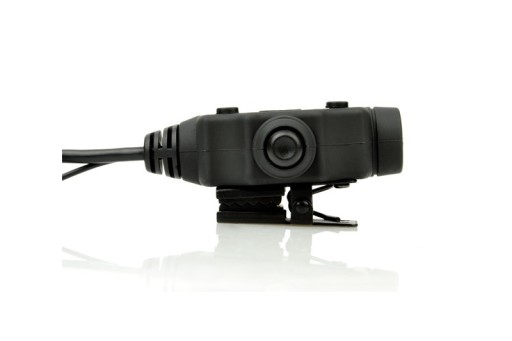 Кнопка PTT для гарнітур із штекером для військових навушників. Кнопка кріпиться до обладнання завдяки простому і міцному затиску. Для його виготовлення використовувався армований нейлон, а пряжка виготовлена зі сталі.