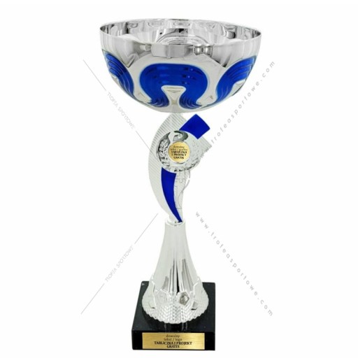 срібно-блакитна чашка з додатковою наклейкою на ніжці.