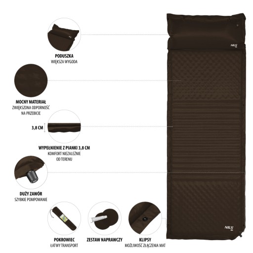Самонадувний килимок з подушкою NC4001 - чудове рішення для всіх, хто любить проводити час у кемпінгу, в наметі або на пляжі!