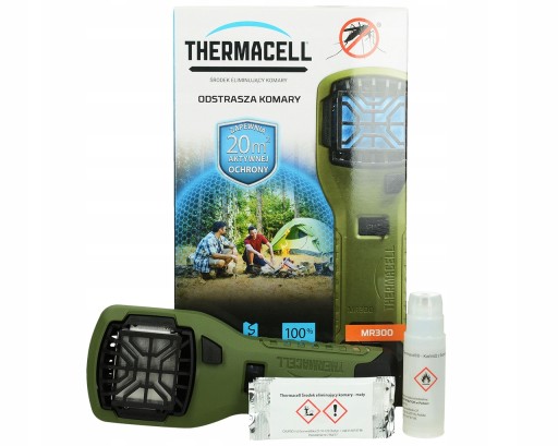 Засіб від комарів Thermacell. У місці запуску пристрій створює зону, вільну від комарів, на площі 20 м². У комплект входить пристрій і змінні картриджі, що забезпечують 12 годин захисту від комарів. Ідеально підходить для використання під час активного відпочинку. Продукт, спеціально розроблений для рибалок, спостерігачів за природою, мисливців і любителів виживання. Він також ідеально підходить для садівництва та відпочинку на природі. Продукція Thermacell була перевірена EPA (Агентство з охорони навколишнього середовища США) на безпечність та ефективність.