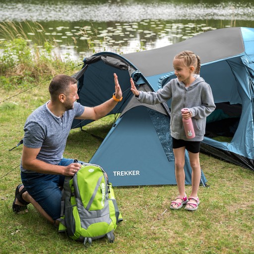 Trekker - це двошаровий намет з підвісною спальнею і великим тамбуром, де можна провести дощові вечори або зберігати туристичне спорядження. У наметі можуть розміститися чотири людини, що забезпечує достатній простір і комфорт під час сну.