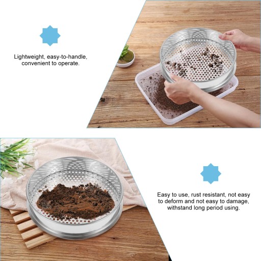 Якщо ви шукаєте практичне сито для сортування ґрунту, я можу сказати вам, що наш продукт може бути найкращим вибором для вас. Використовуйте матеріали з нержавіючої сталі, тверді, ви можете використовувати їх протягом деякого часу. Хоча він простий за структурою, він дуже практичний, коли використовується для просіювання землі, перлів тощо.