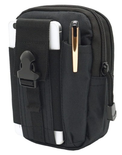 Військова сумка кріпиться на пояс за допомогою пояса, чорного кольору. Сумка може вмістити багато різних предметів, таких як смартфон, документи, телефон, ключі від машини, кишеньковий ніж, ключі від дому, ліхтарик, блокнот тощо. Розміри 60х100х160 мм.