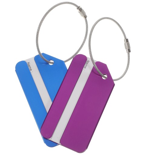 Предмет являє собою набір з 2 штук простих і практичних туристичних багажних бирок 2 різних кольорів, і кожна багажна бирка має назву, щоб ви могли написати своє ім’я та прізвище та легко відрізнити свій багаж від інших. Крім того, він оснащений одним металевим тросом з гвинтовим з'єднанням для щільного з'єднання багажу з біркою.