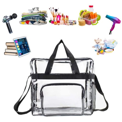 👓【Прозора сумка через плече】Ця прозора сумка виготовлена з високоякісного ПВХ матеріалу, який достатньо товстий, щоб бути міцним і довговічним. Стійка нейлонова ручка дозволяє комфортно переносити важкі вантажі для тривалого використання.