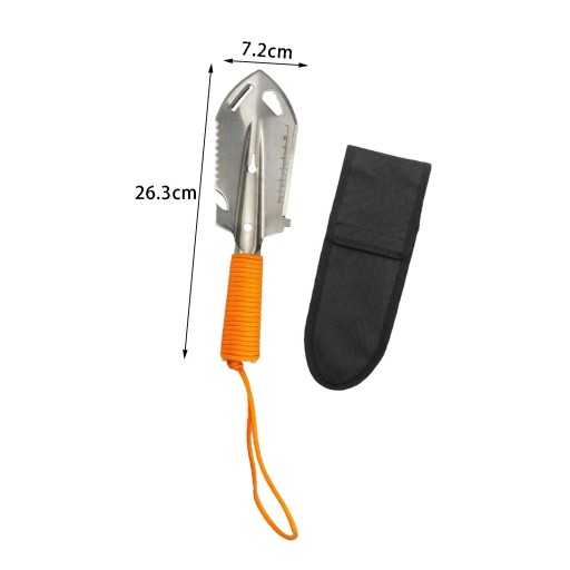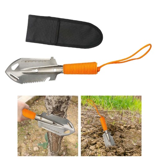 Садова багатофункціональна саперна лопата 9-в-1: можна використовувати як цвяховидимач, шестигранний ключ, лопату, аварійний ніж, лінійку, відкривач для пляшок, пилку, викрутку та шкірний ніж.