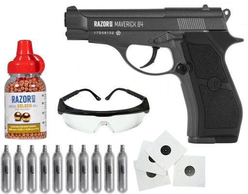 Пневматична зброя RazorGun Maverick 84 - 4,5 мм BB CO2 + 1500 дробин + 10 капсул CO2 + захисні окуляри + 10 мішеней