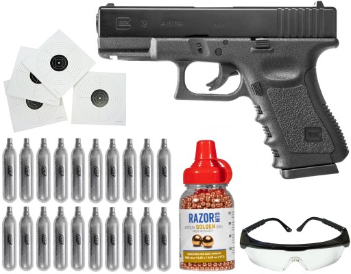 Пневматичний пістолет Glock 19, що використовує 4,5-міліметрові кульки BB, працює від 12-граммових капсул CO2. Пневматична зброя є точною копією вогнепальної версії пістолета Glock 19 і має таке ж заводське маркування, логотип GLOCK, металевий магазин, що висувається з рукоятки, металевий замок, спускову систему DAO та багато інших рішень.