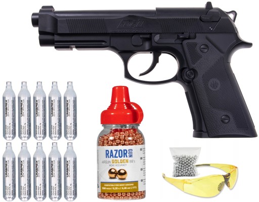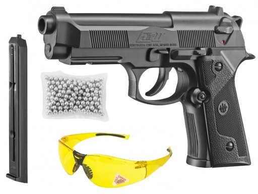 Ліцензійна копія Beretta Elite II з 12-грамовим картриджем CO2. Більшість пневматичної зброї виготовляється з міцного пластику.
