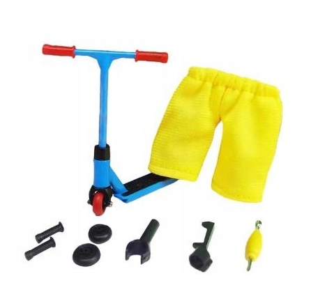 - Аксесуари: легкосплавний скутер (синій) + штани (жовті) + набір аксесуарів для розбирання (випадковий колір деталей)