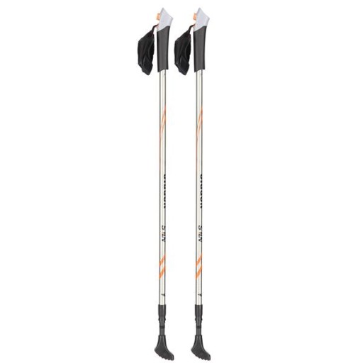 Nils Model NW106 - палиці з телескопічною структурою, що дозволяє швидко і легко регулювати їх довжину в залежності від росту користувача. Палиці Nils NW106 мають нековзку та ергономічну ручку з регульованою рукавичкою. Змінні колодки та пластини дозволяють використовувати палиці під час походів по рівнинних ділянках з такими поверхнями, як асфальт, трава, сніг, пісок, грязь тощо.