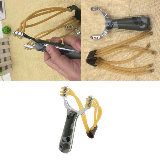 високошвидкісна, міцна латексна гума з шести смуг, сильніша та руйнівніша. Стріляйте камінням, кульками, кульками з фарбою тощо. Ручка з АБС-пластику, верхня рама з суцільного лакованого алюмінію, верхня частина з натурального каучуку та шкіряна верхня кришка Портативний розмір, легко поміщається в кишені Ідеально для розваг на природі