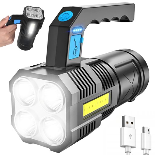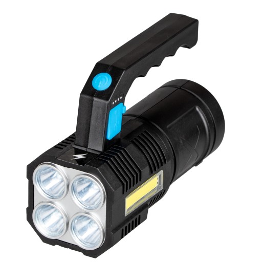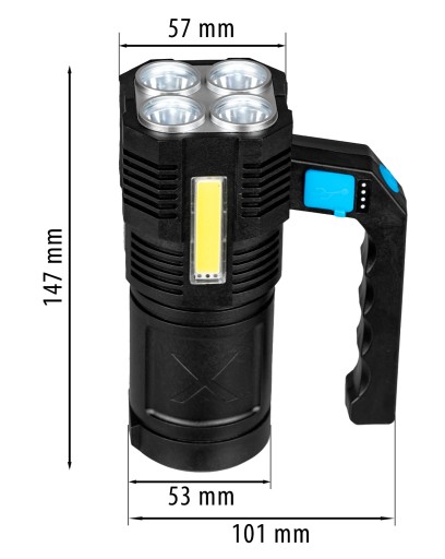 Легкий і зручний світлодіодний ліхтарик, оснащений двома незалежними світлодіодними джерелами світла: 4X3030LED і COB. Перший випромінює сфокусований промінь світла потужністю 250 люмен і ідеально підходить для освітлення віддалених просторів. Однак другий бічний ліхтар потужністю 120 люмен дає більш широкий промінь світла. Ідеально підходить для читання, як майстерня або настільна лампа. Режими перемикаються натисканням перемикача.