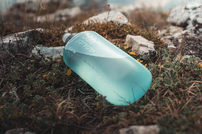 Щоб позбутися смаку пластику, ми рекомендуємо тричі промити флягу чистою водою перед першим використанням. Потім висушіть його догори дном (без мундштука). Мундштук можна розібрати, щоб ретельно його промити. Особливо, якщо в пляшці були солодкі напої. Щоб уникнути звуку струшування води під час бігу, спустіть повітря з м’якої колби, всмоктуючи бульбашки повітря. Завдяки інноваційному процесу пластиковий матеріал цієї м’якої фляги має нейтральний смак і запах.