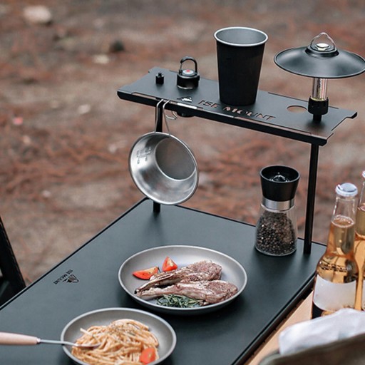 Універсальність: горизонтальна вішалка та полиця для зберігання можуть утримувати різноманітні предмети, а заглиблення з обох боків можуть повісити посуд та інші речі для кемпінгу