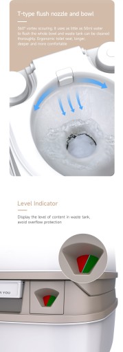 - Резервуар для прісної води з ефективним поршневим змивом
