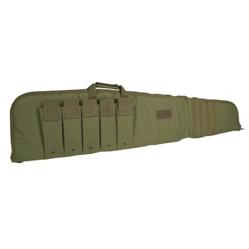Довгий чохол для зброї з водонепроникного поліестеру, включаючи ручку для перенесення та плечовий ремінь. Крім того, на обкладинці є зовнішні кишені для журналів і аксесуарів, а також липучки для легкої персоналізації