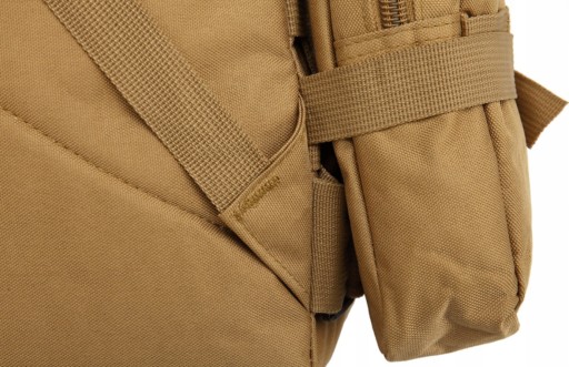 Рюкзак має систему перенесення, яка складається з профільованих плечових лямок з швидкознімними пряжками, що є практичним рішенням і дозволяє відразу знімати рюкзак. Плавне регулювання профільованих плечових лямок, нагрудний ремінь і знімний стегновий ремінь забезпечують стабільне носіння - ремінь дозволяє розвантажити хребет і плечі під час носіння рюкзака - вся вага зосереджена на стегнах. На передній частині рюкзака, а також на плечових лямках і бічних сумках використовуються стрічки PALS, які дозволяють кріпити спорядження в системі MOLLE - це дозволяє встановити додаткові кишені.