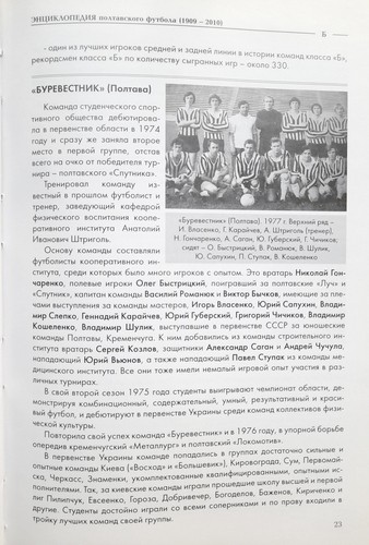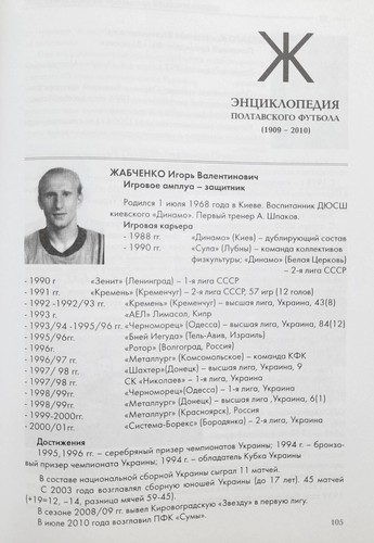: Видання обсягом понад півтисячі сторінок, випущене невеликим тиражем, розповідає про 100-річну історію футболу в українській Полтаві та околицях. Книга видана у формі енциклопедії, де кілька сотень статей подано в алфавітному порядку. Це не лише розлогі біографії та тексти про відомих футболістів, тренерів та активістів. Також це презентація всіх футбольних клубів, які діяли в Полтаві та районі в розглянутий період. Для більш видатних, таких як Worskła, також є багато підсумків і статистики.
