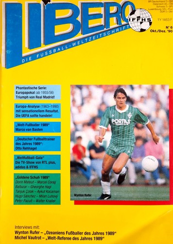 : Один із примірників журналу "Ліберо" - офіційного журналу Міжнародної асоціації футбольних істориків і статистиків (IFFHS). Це видання, багате текстами, інформацією, архівними фотографіями та статистикою щодо історії футболу в окремих країнах та міжнародних змагань. Це питання включає, серед іншого: повна документація матчів з текстами та архівними фотографіями першого видання Кубка чемпіонів (1955/56), тексти та інтерв'ю, що представляють переможців нагород IFFHS найкращому гравцеві 1989 року в Океанії (Вінтон Руфер) та найкращому судді 1989 у світі (Мішель Вотро), статистичний аналіз відвідуваності окремих європейських футбольних ліг у 1963-1990 роках та біографії з фотографіями та статистичними даними провідних гравців у класифікації Золотої бутси 1988/89. Журнал виходить німецькою мовою.