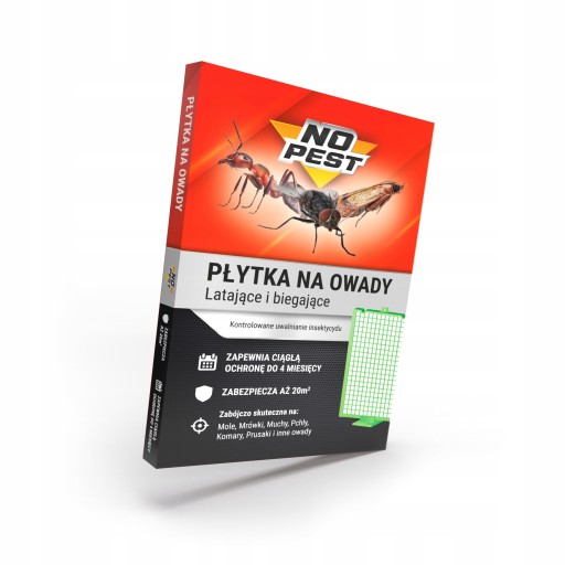 Плитка від комах - це продукт від No Pest, створений для боротьби з комахами в наших будинках. Пластинка, яка просочена двома діючими речовинами - гераніолом і трансфлутрином, ефективно знищить будь-яку комаху. Для повного захисту приміщення площею 20 м² достатньо лише 4 годин.