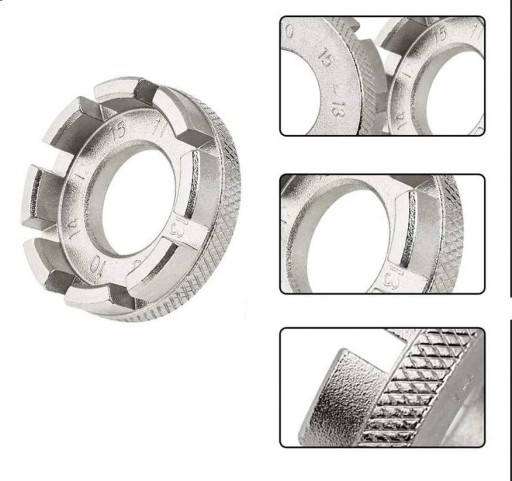 - Міцний ключ для центрування коліс, виготовлений зі сталі. Це дозволяє центрувати колеса з ніпелями 6 різних розмірів. Розміри в наявності в ключі: 10, 11, 12, 13, 14, 15