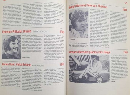 : книга, присвячена Формулі-1 - від її початку до 1989 року. Автор описує окремі сезони найпрестижніших гонок світу, розвиток дисципліни, найвидовищніші події, моделі автомобілів, а також людей, які зробили унікальний знак в історії Формули-1. Хуан Мануель Фанхіо, Майк Готорн, Філ Хілл, Джим Кларк, Деніс Халм, Емерсон Фіттіпальді, Маріо Андретті, Айртон Сенна, Нікі Лауда, Кеке Росберг і Ален Прост. Все це ілюстровано переважно чорно-білими фотографіями.